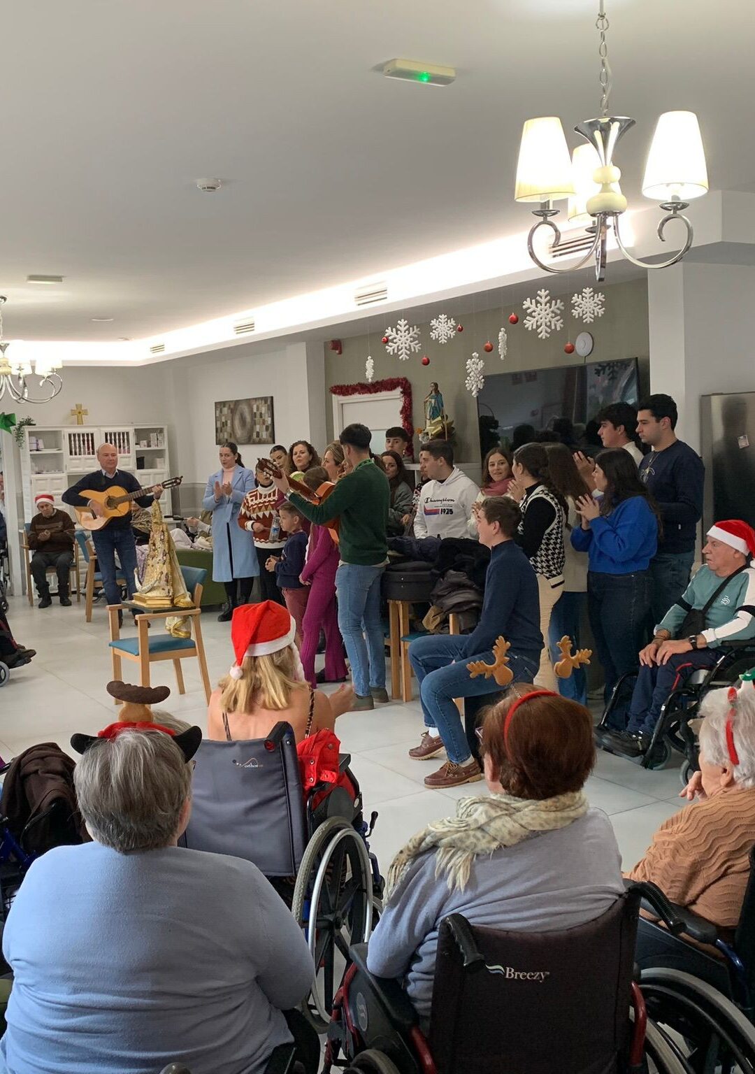 Dentro de las visitas navideñas ha estado la Hermandad Ntra. Sra. del Rocío de Jamilena los cuales han venido cargados de muestras de cariño y mucho amor para todos. Hemos pasado una tarde entrañable llena de villancicos. Han venido cargados de felicitaciones de niños para cada uno de nuestros residentes y usuarios y además han tenido la suerte de poder besar y realizar peticiones a la preciosa Virgen del Rocío. Desde aquí agradecerles enormemente su visita y quedamos a la espera de su pronta vuelta.