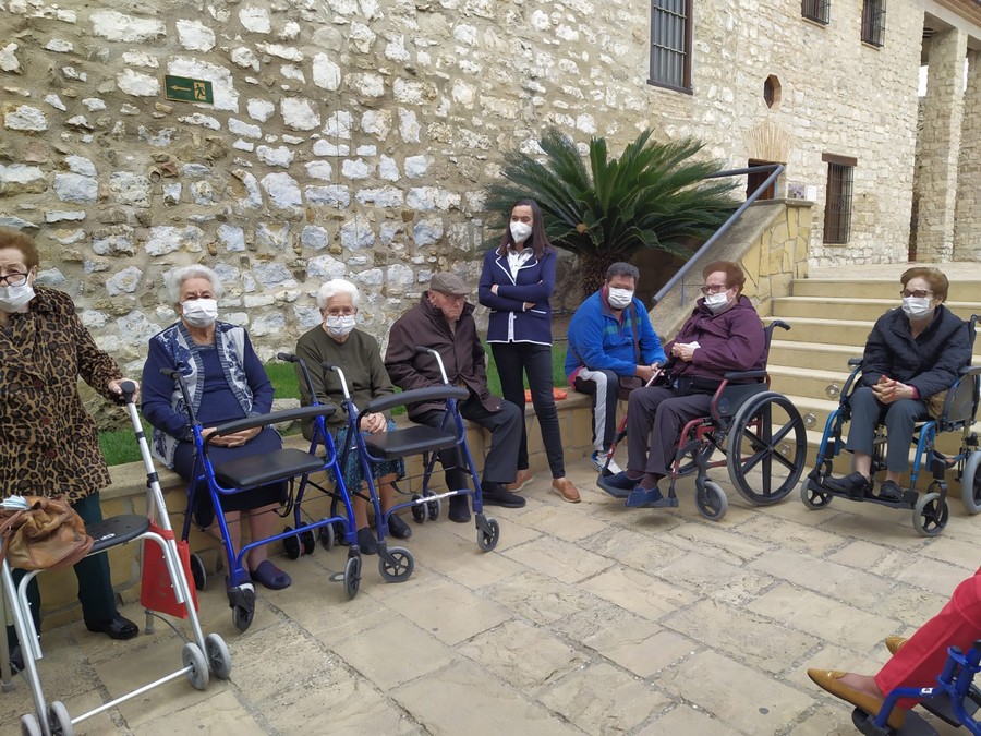 A LA VISITA HEMOS ASISTIDO UN GRUPO NUTRIDO, UNAS 50 PERSONAS ENTRE RESIDENTES, FAMILIARES, TRABAJADORAS, VOLUNTARIOS Y RELIGIOSAS. DAR LAS GRACIAS A LOS FAMILIARES Y SU APOYO INCONDICIONAL EN TODO LO QUE HACEMOS DESDE EL CENTRO, Y A LOS VLUNTARIOS CON LOS QUE CONTAMOS Y QUE SON NUESTRA FAMILIA.