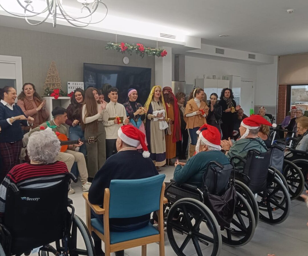 El jueves recibimos la esperada visita que desde hace unos años es imprescindible para nuestra residencia. La Hermandad Ntra. Sra del Rocío De Jamilena nos traen sus cantes y bailes que tanto nos alegran. Además nos traen al niño Jesús para que lo podamos besar y tarjetas navideñas que los niños y niñas nos han hecho con tanto cariño. 1000 Gracias por esta tarde que nos habéis regalado
